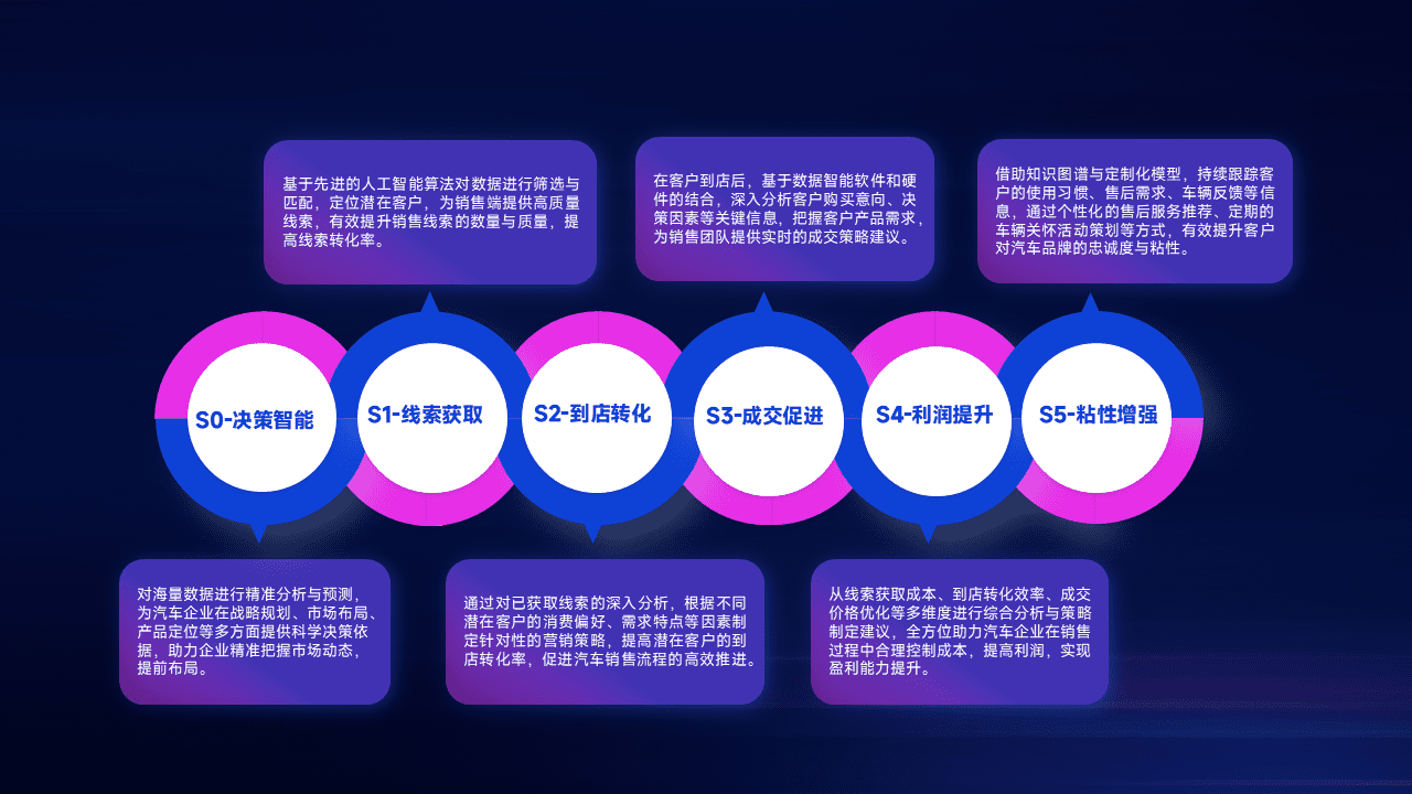 通过拓宽潜在客户来源、、优化线索分配并提高到店转化率,,,以增强销售效率。。。。同时,,,利用线索数据不断优化分析模型,,,有效提升转化率,,,,扩大营销影响力。。